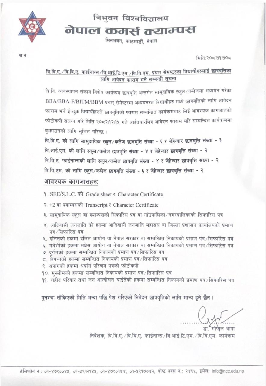 Nepal Commerce Campus (popularly known as NCC), one of the oldest management colleges of Tribhuvan University, was established in 2021 BS with zeal of imparting quality education in the country. Nepal Commerce Campus-NCC (also known as Minbhawan Campus) is currently offering Six different management programs. In Bachelors level it is offering BBS, BBA, BBM, BIM & BBA-Finance . In Masters level it is offering MBS, MBM & MBA-Finance program.