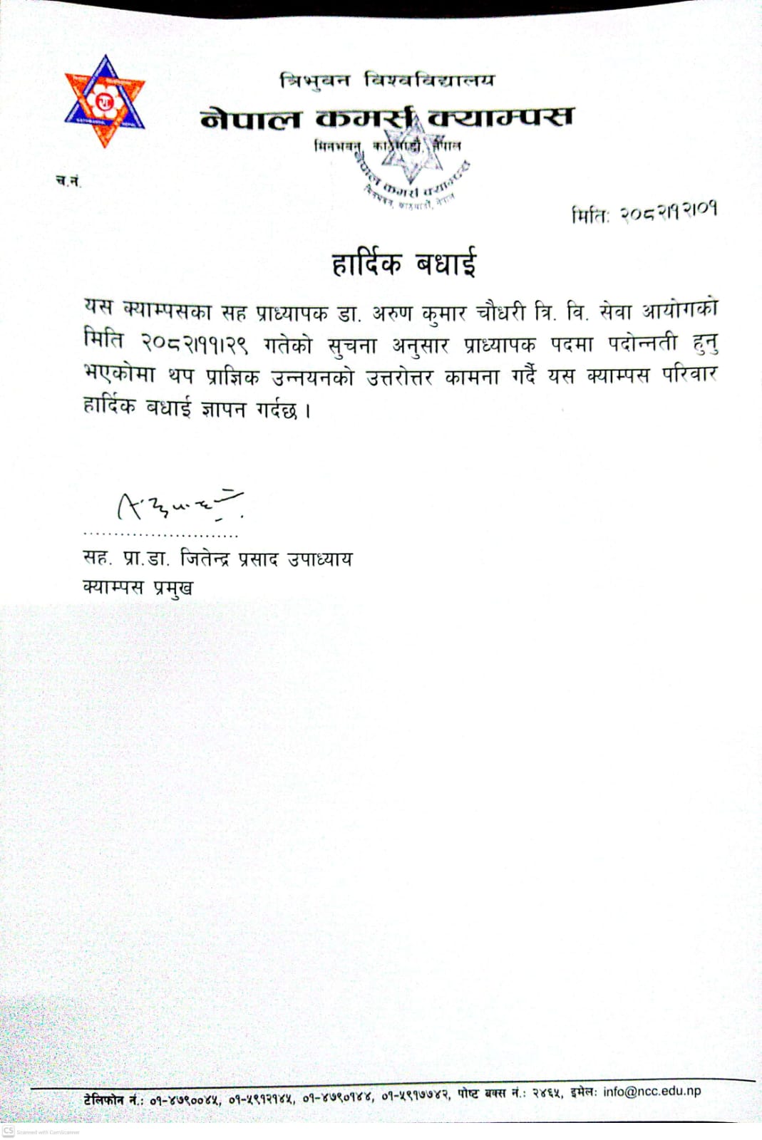Newly Appointed Assistant Campus Chief Nischal Ris...