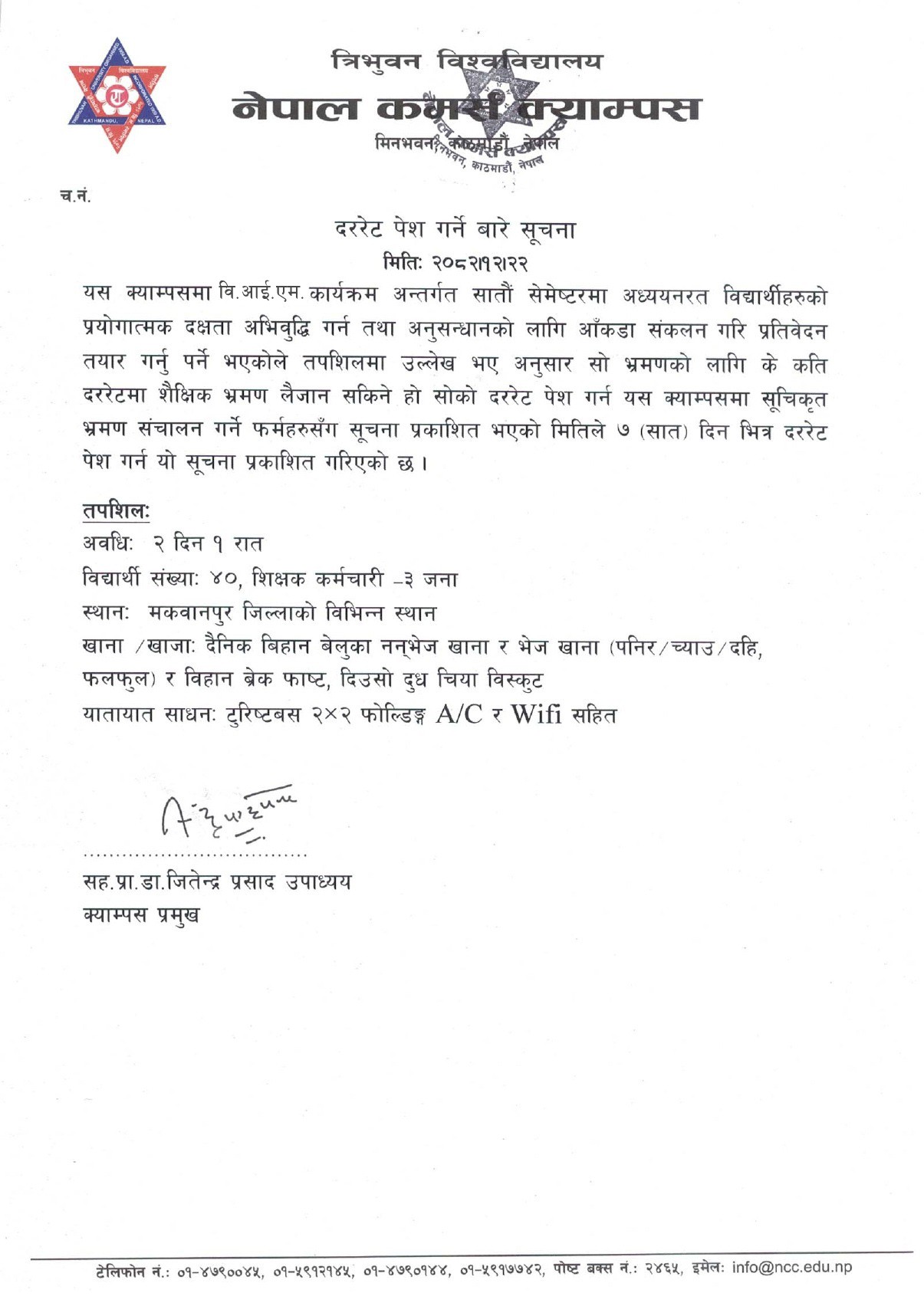 अध्यापन कार्य बन्द हुने बारे सूचना