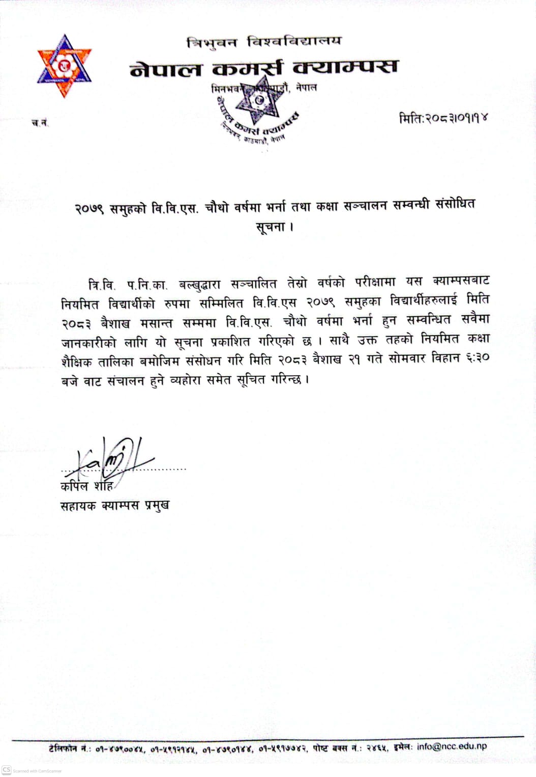अध्यापन कार्य बन्द हुने बारे सूचना