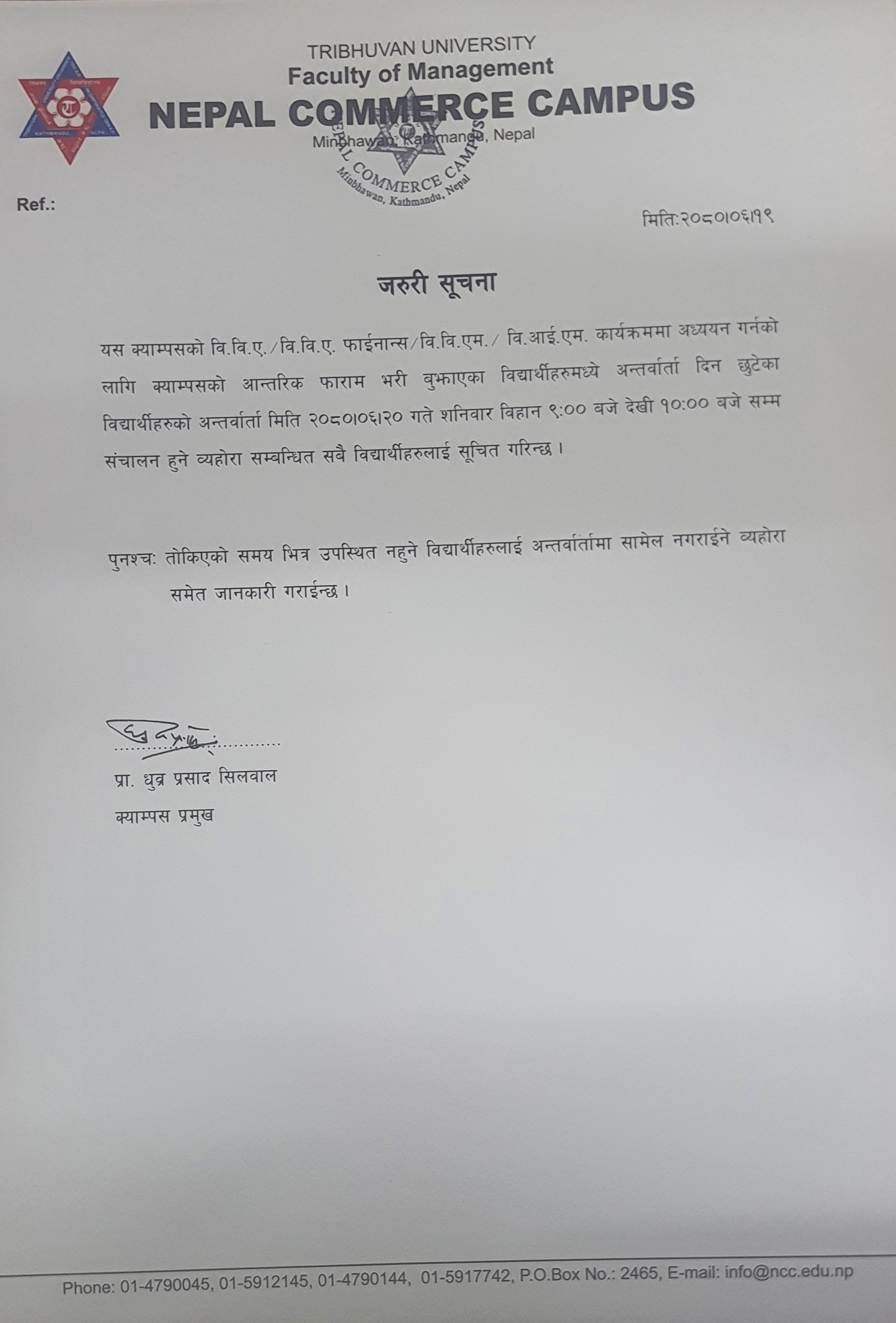 छुट अन्तर्वार्ता सम्बन्धि सूचना
