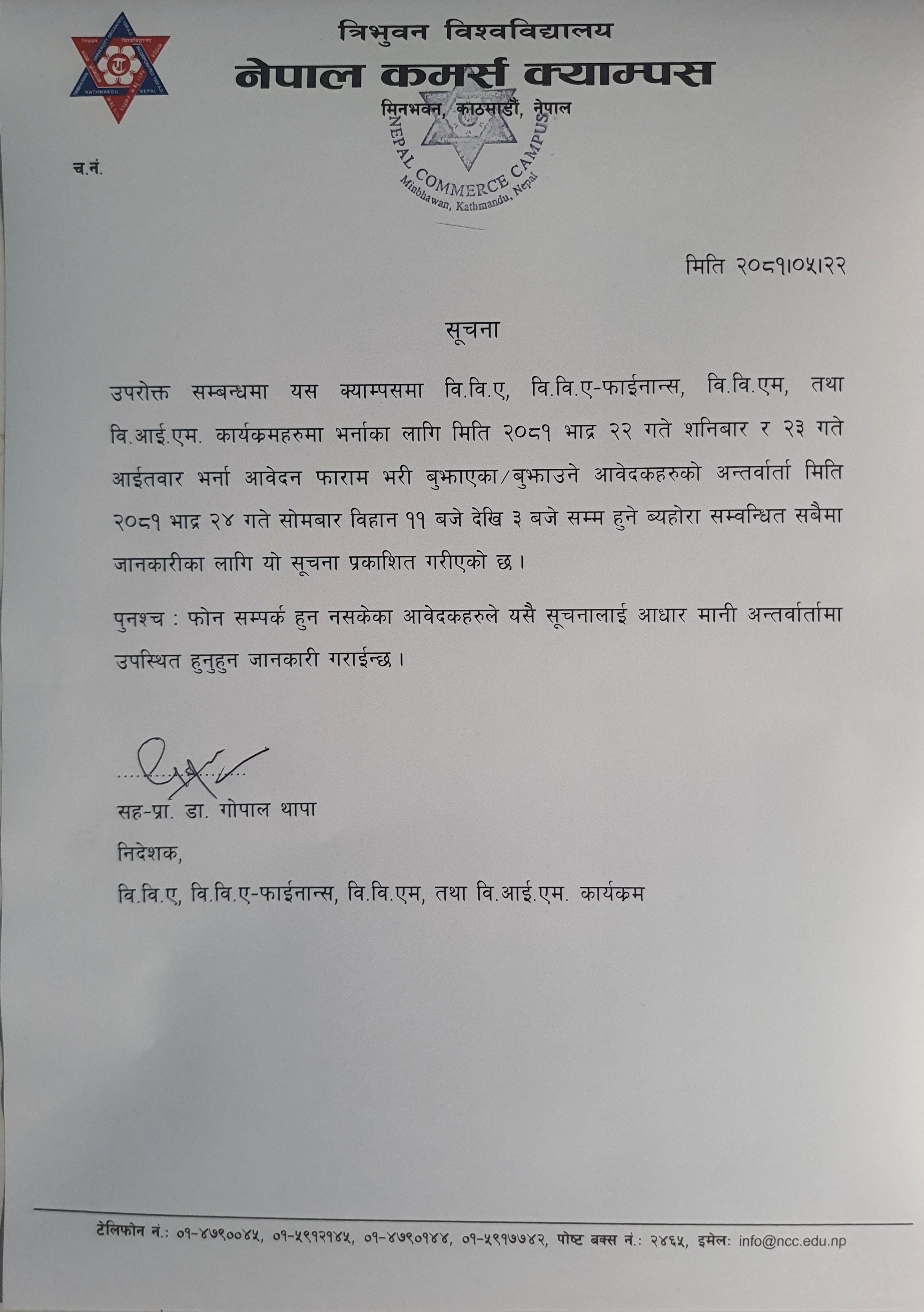 २४ गतेका लागि अन्तर्वार्ता सम्बन्धि सुचना