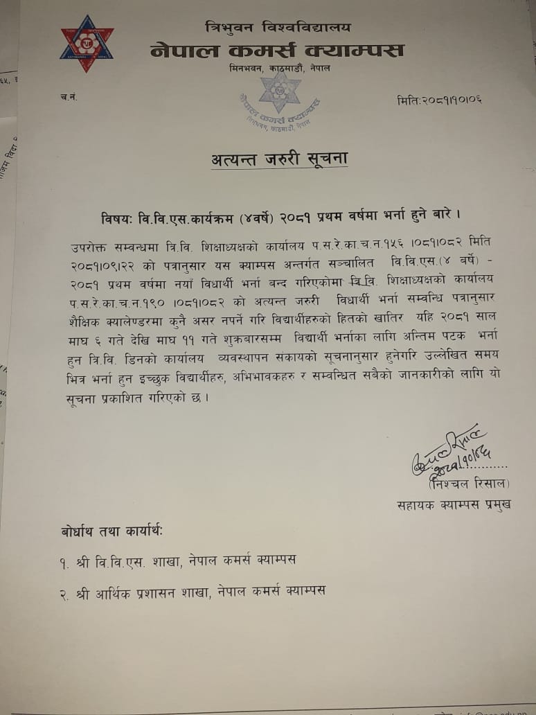 बिविएस भर्ना २०८१ सम्बन्धि सुचना
