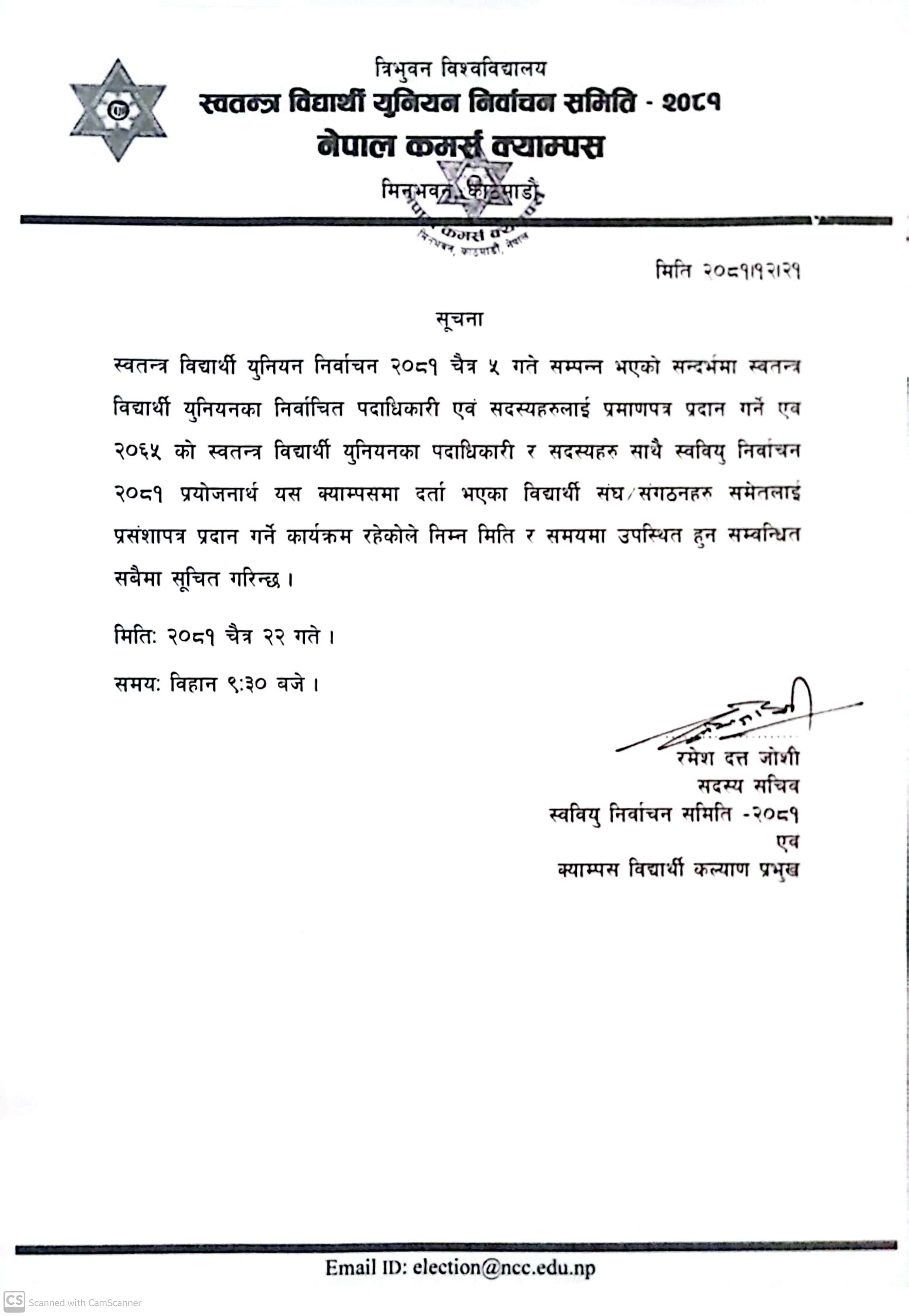 प्रमाणपत्र बितरण सम्बन्धि सूचना