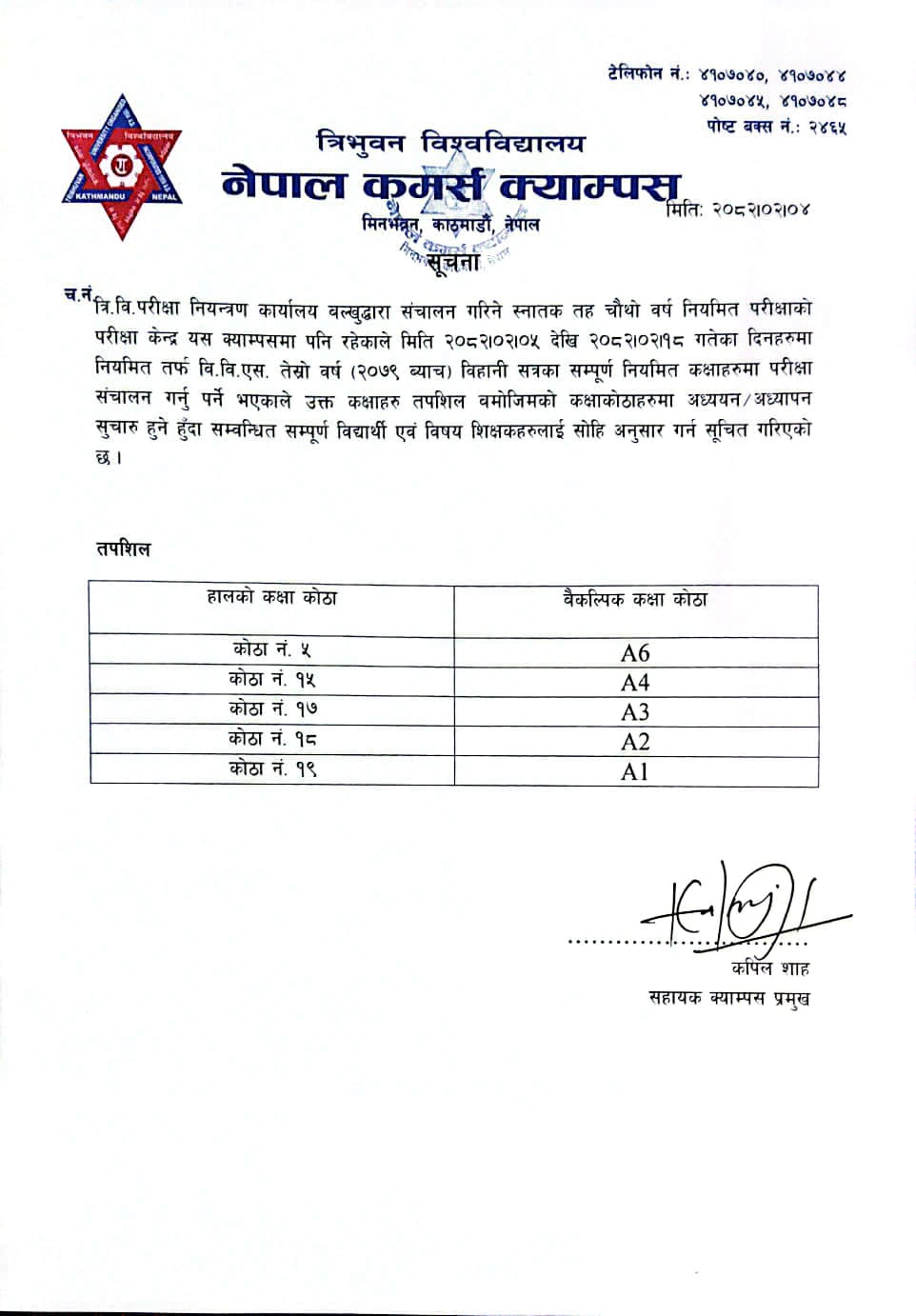 बैकल्पिक कक्षाकोठा व्यवस्थापन सम्बन्धि सुचना
