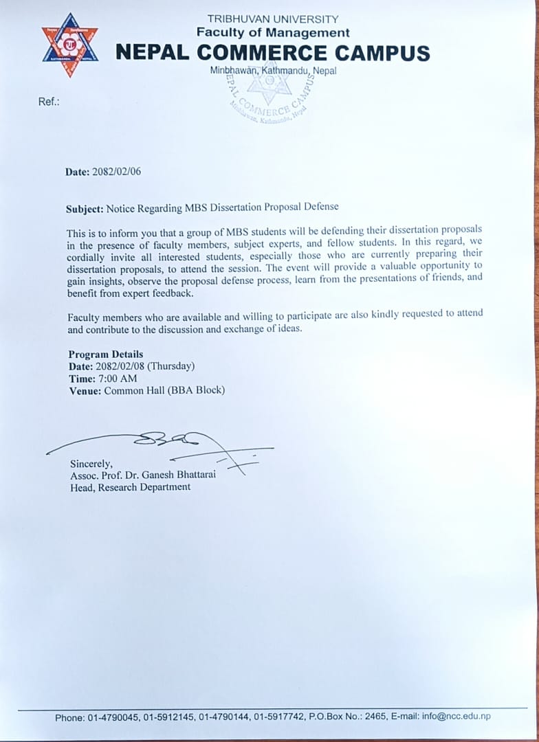 दररेट पेश गर्ने MBA-F