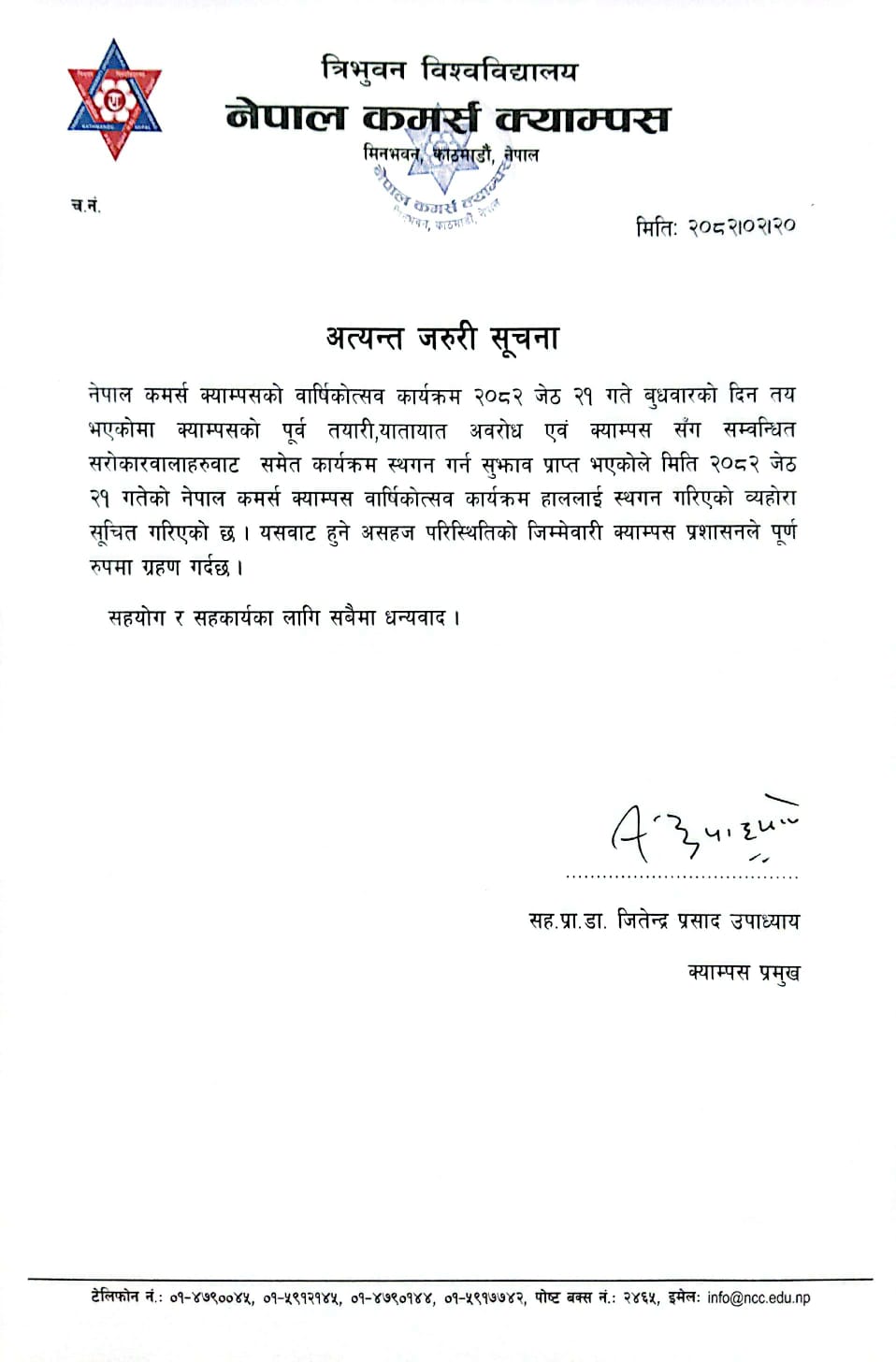 बार्षिकोत्सव सम्वन्धी अत्यन्त जरुरी सूचना
