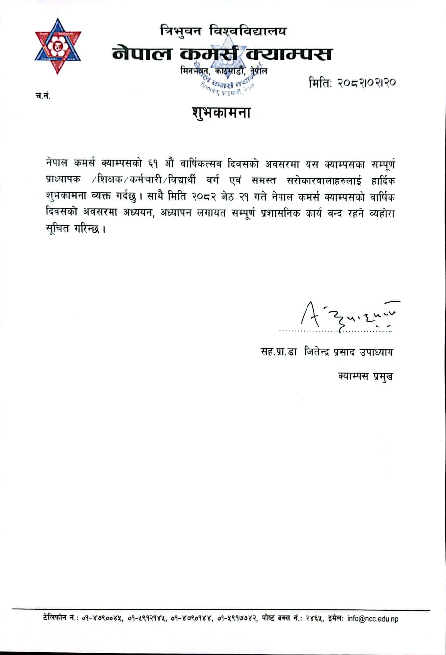 ६१ औं बार्षिकोत्सव दिवसको शुभकामना तथा स्थानीय विदा सम्वन्धी सूचना